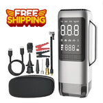 Intelligent Tire Inflation with Tire Pressure Monitor: jump box for car battery is also an auto air pump for car tires, auto shut-off feature to avoid over-inflation, preset 4 inflation mode to offer fast and safe inflation for the car/motorcycle/bike tires and inflatable items. Up to 150 PSI and support 3 optional unit (PSI/KAR/BAR) switching.