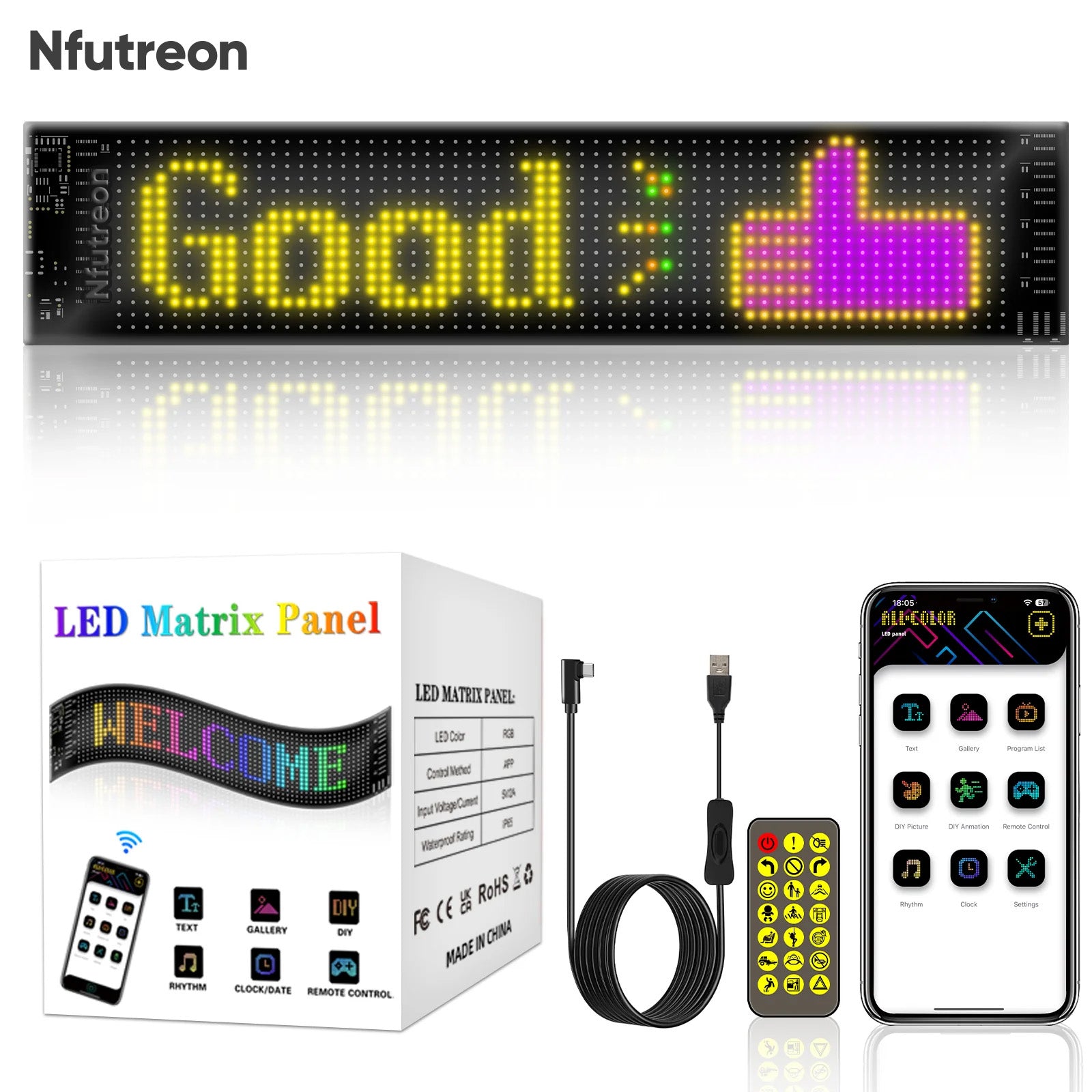 - 【Smart App Control】LED signage is controlled by Bluetooth-connected APP, which supports connecting multiple LED displays at the same time. The app has many interesting patterns and animations built-in. The phone makes it easier to customize interesting patterns and text, and the music mode makes you more passionate.